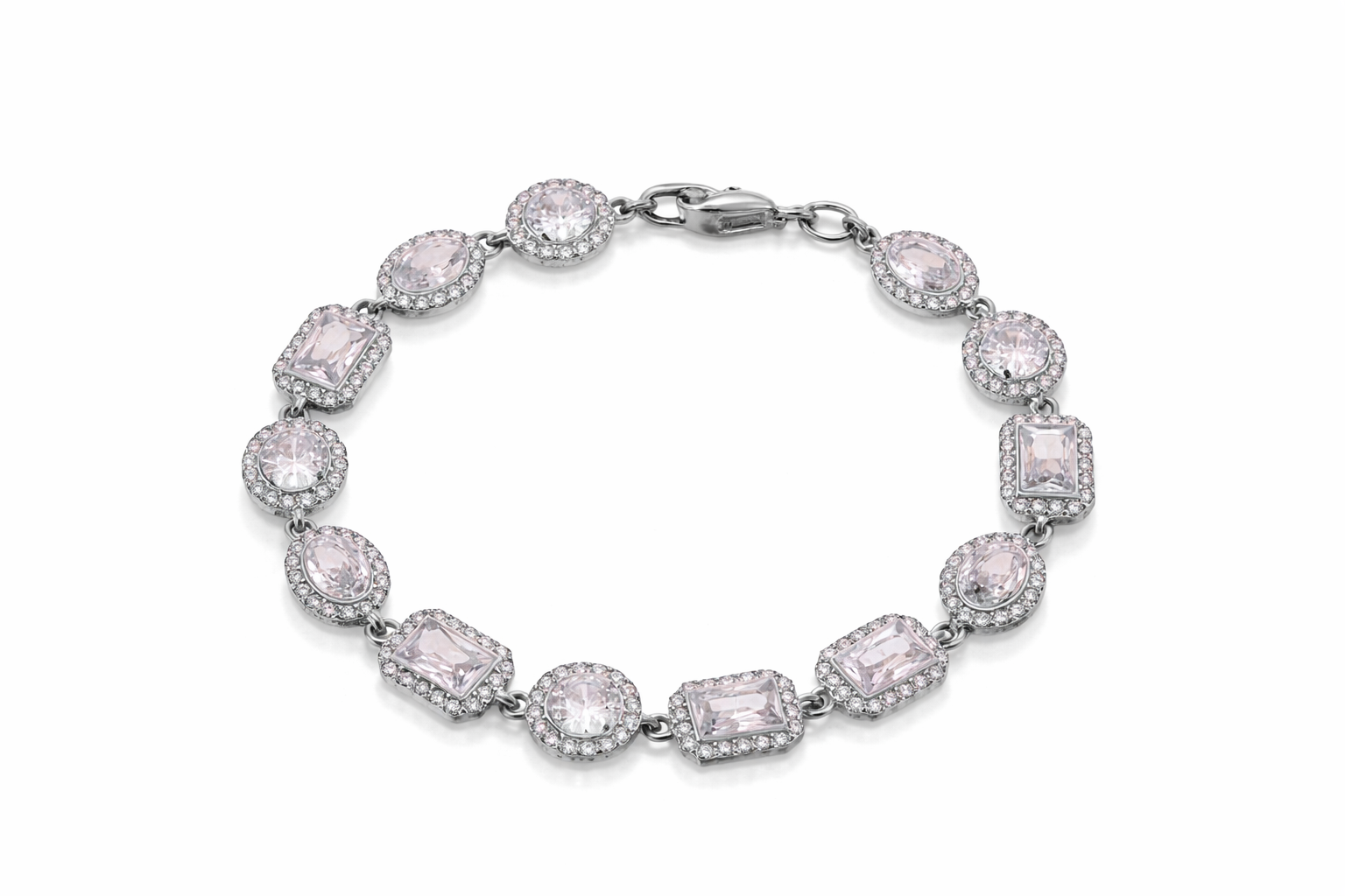 Bracciale elegante in acciaio inossidabile, pensato per unire resistenza e stile. La struttura sottile valorizza una fila di pietre rosa luminose, incorniciate da piccoli dettagli brillanti che riflettono la luce con delicatezza.
